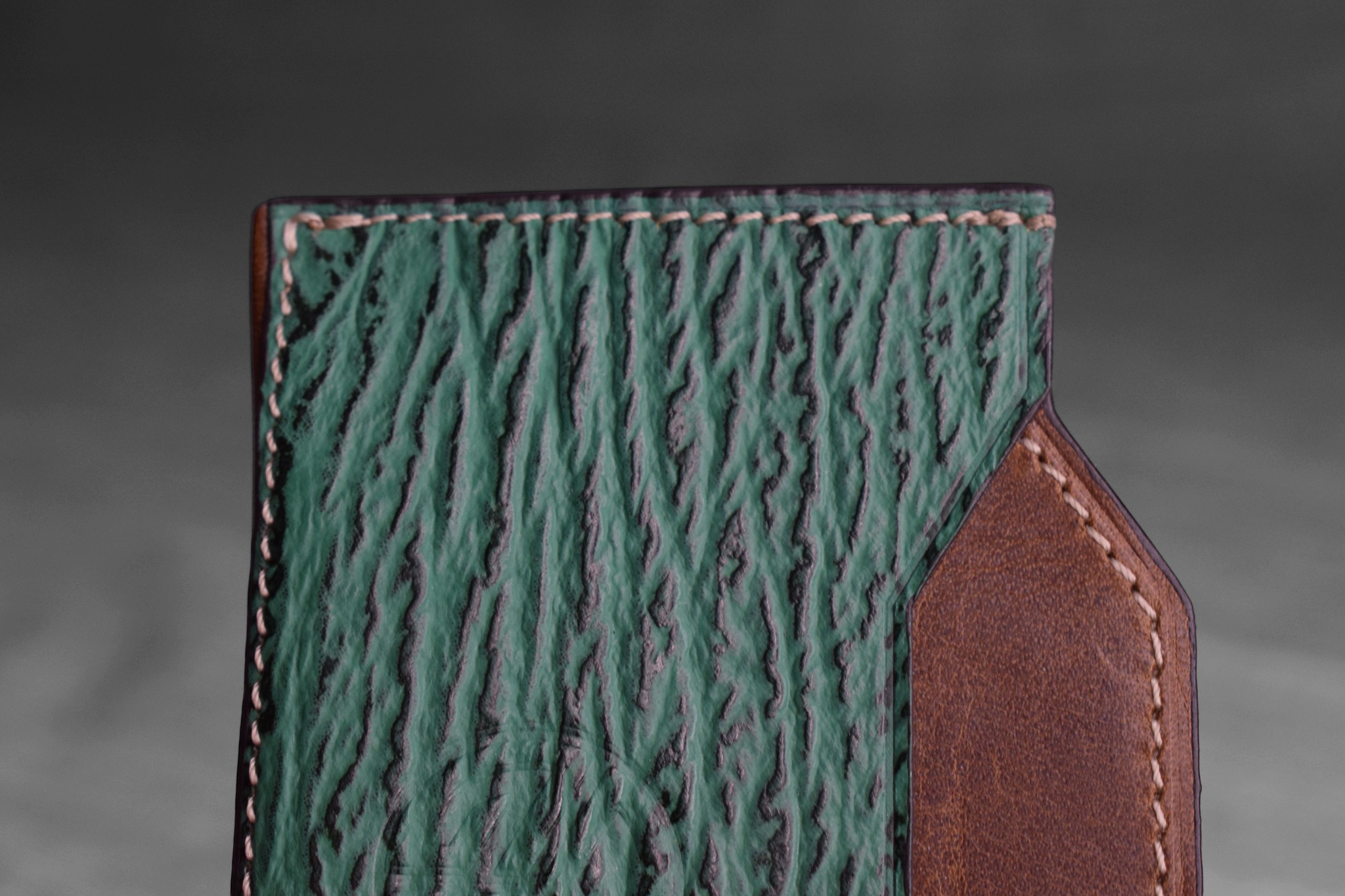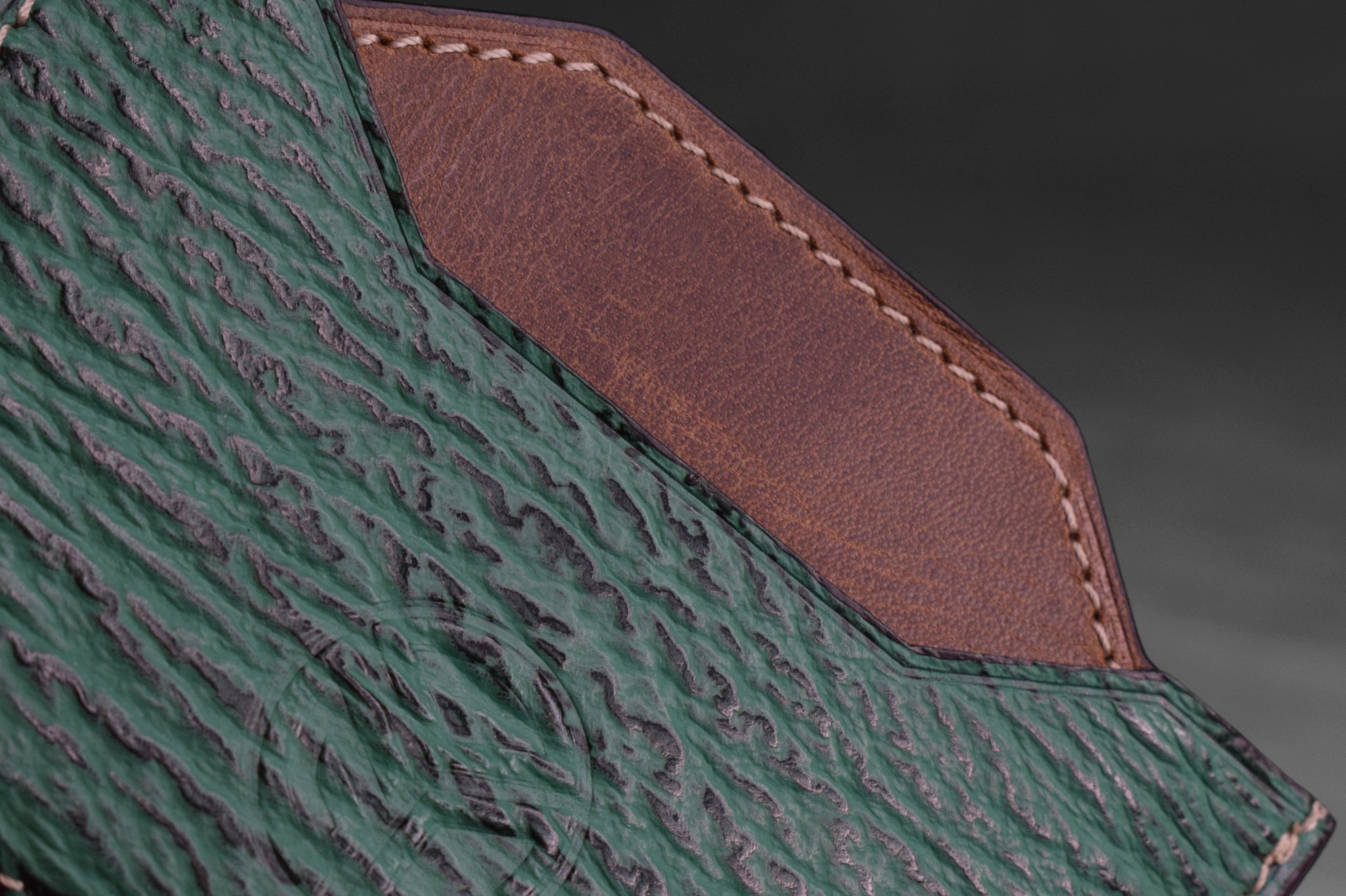 Conçu à partir d’un cuir de requin pleine fleur, rare et résistant, reconnu pour sa texture unique et sa longévité hors pair.