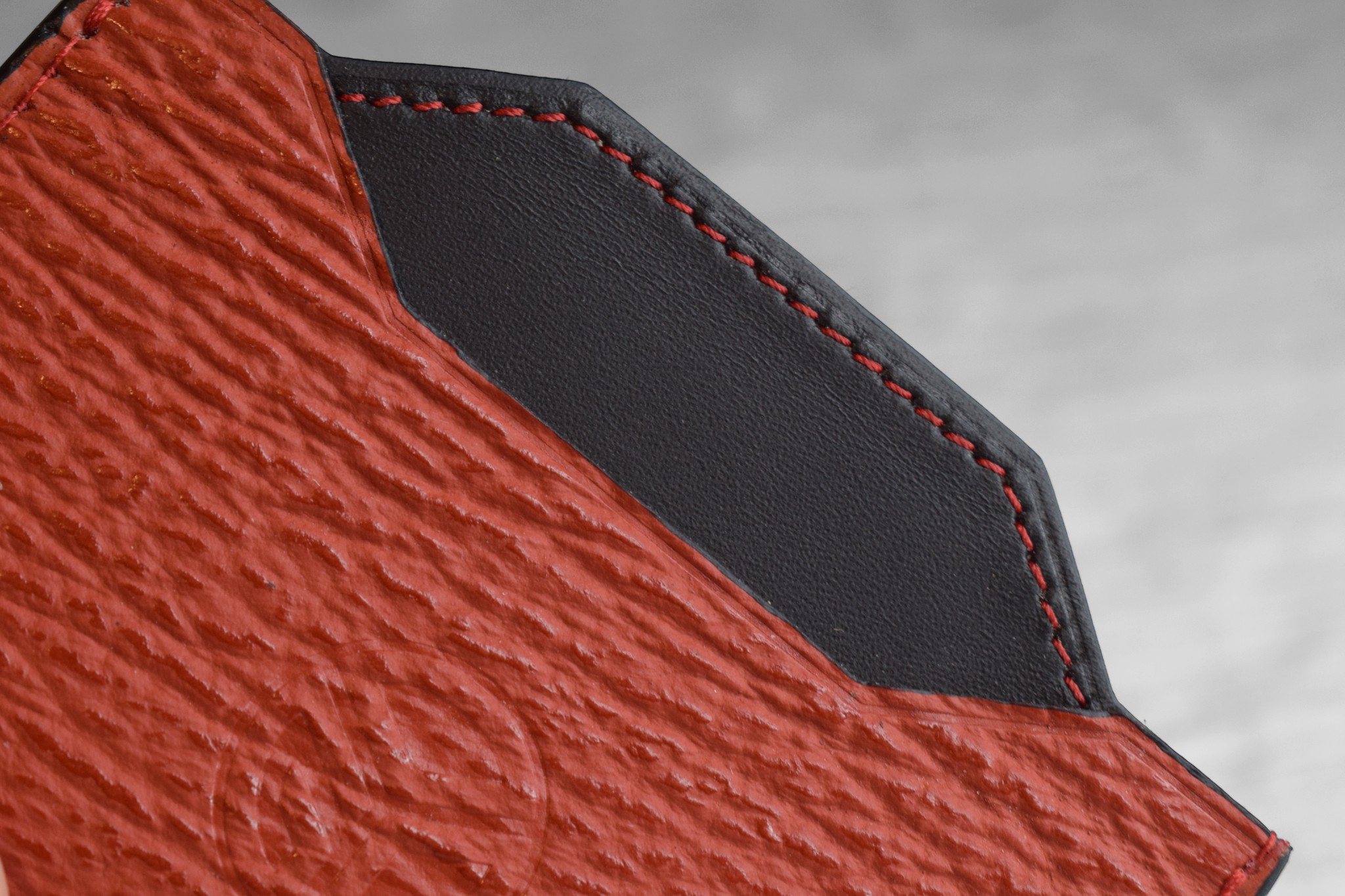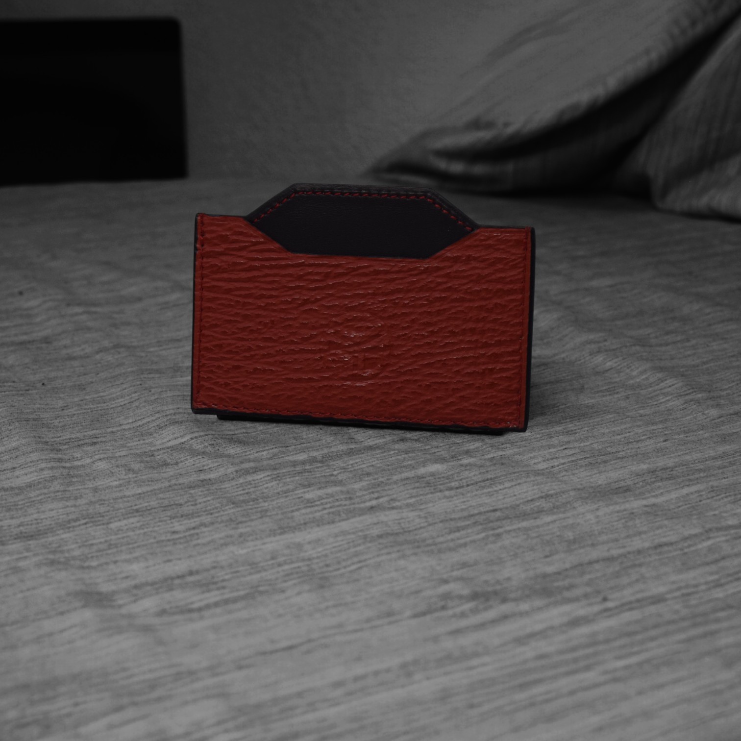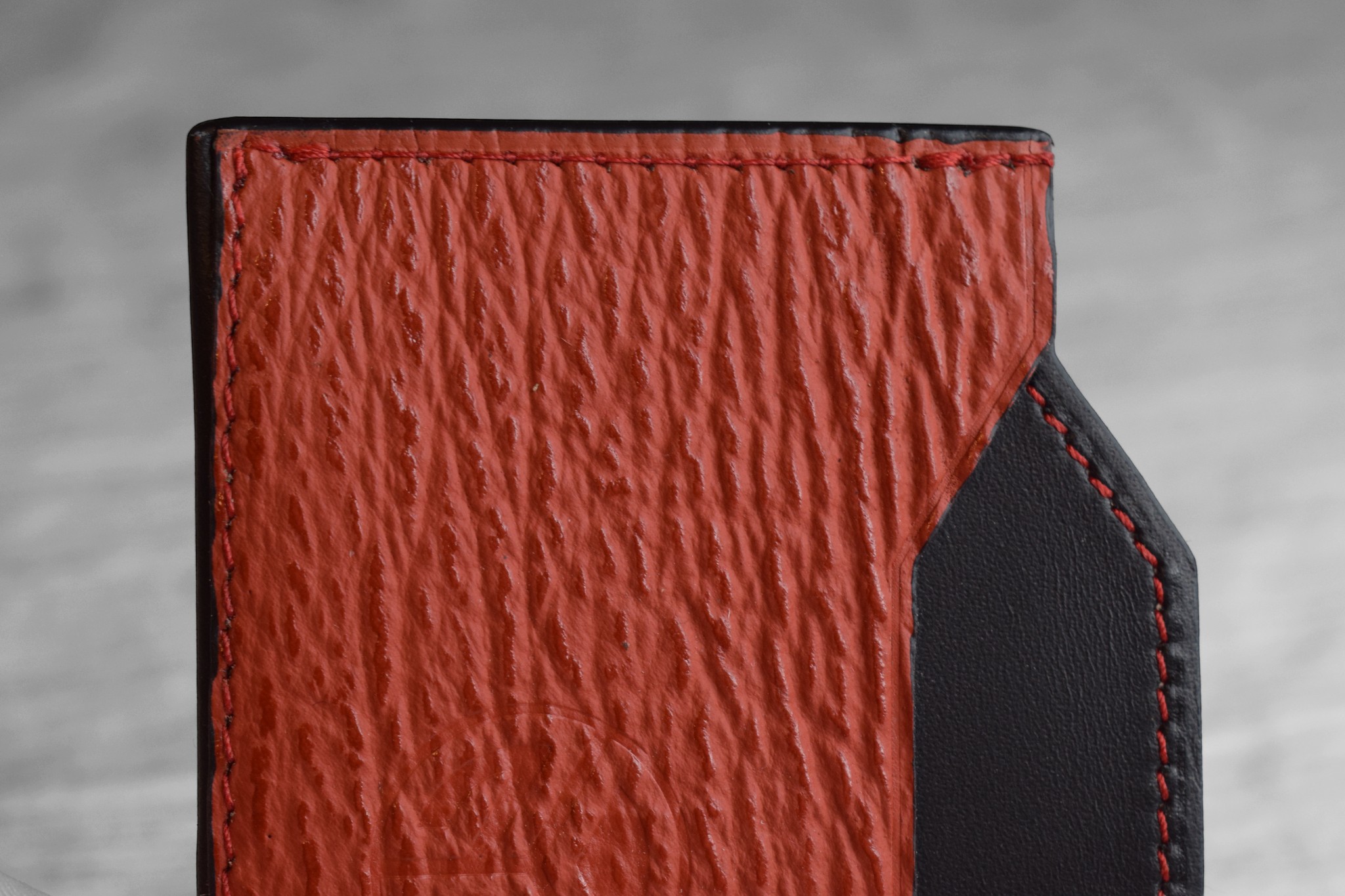 Cuir de requin rare et extrêmement résistant, travaillé à la main par Olivier Gattefossé. Finition sellier et format minimaliste 4 cartes au caractère affirmé.