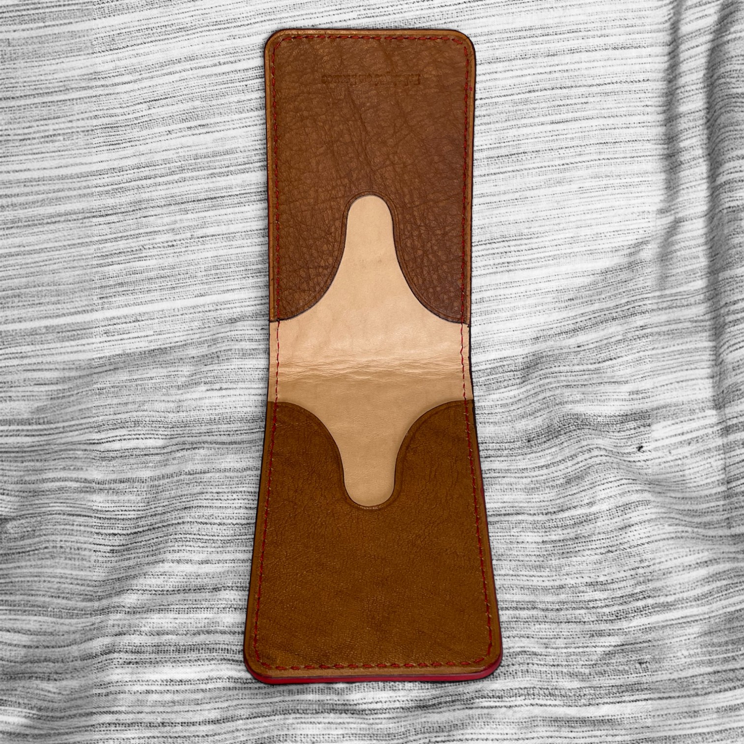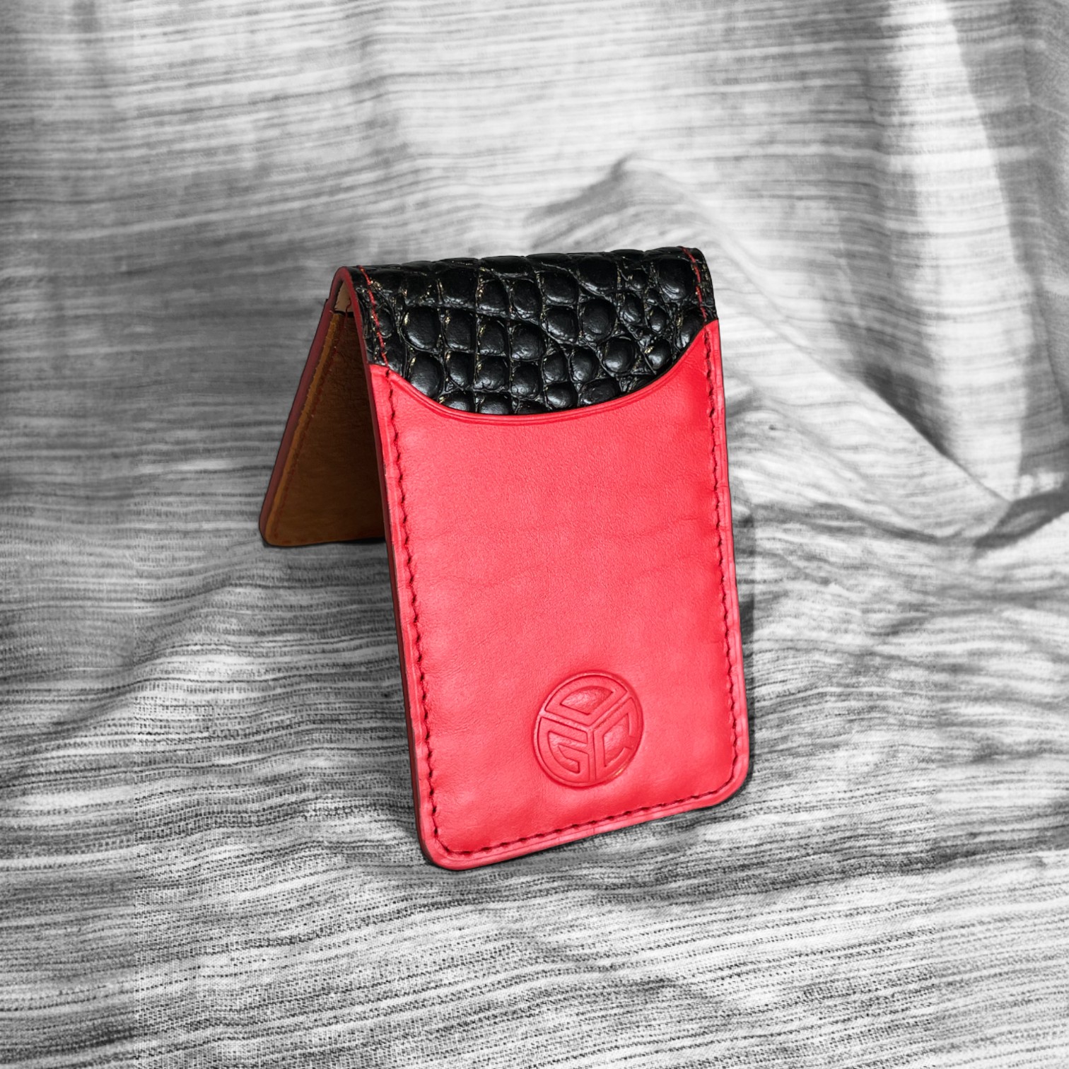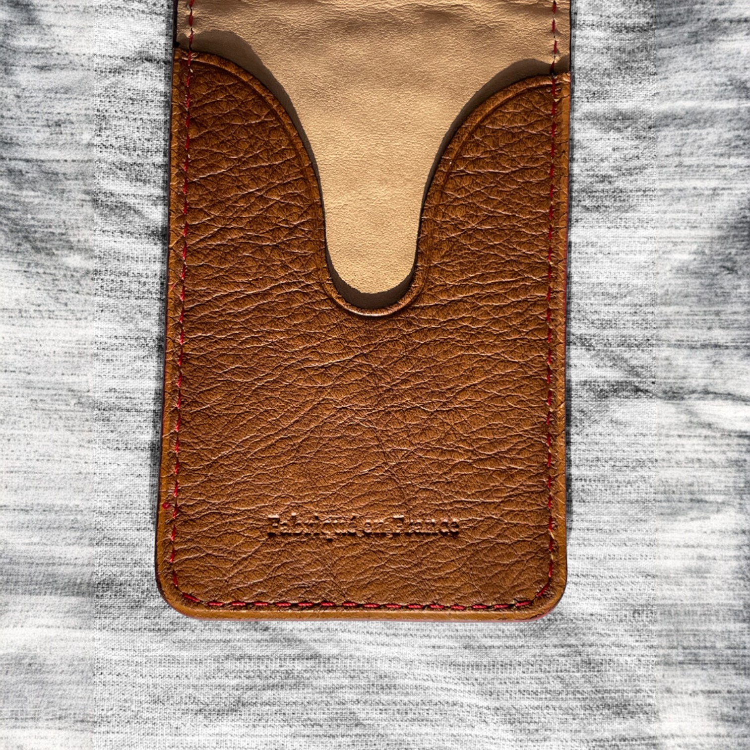 Cuir pleine fleur issu des grandes maisons de couture, façonné à la main en France par Olivier Gattefossé, ancien maroquinier de Jean Paul Gaultier. Coutures sellier pour une solidité maximale et format compact offrant 5 emplacements cartes.